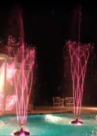 Floating Fountains Transform your existing pool or pond into a bouquet of eye-catching floating fountains. Select from our assortment of fountain patterns including spinning movements and flowery displays. All are equipped with state-of-the-art lighting systems to enhance the visual beauty. Make your pool the stunning centerpiece of any outdoor event. |